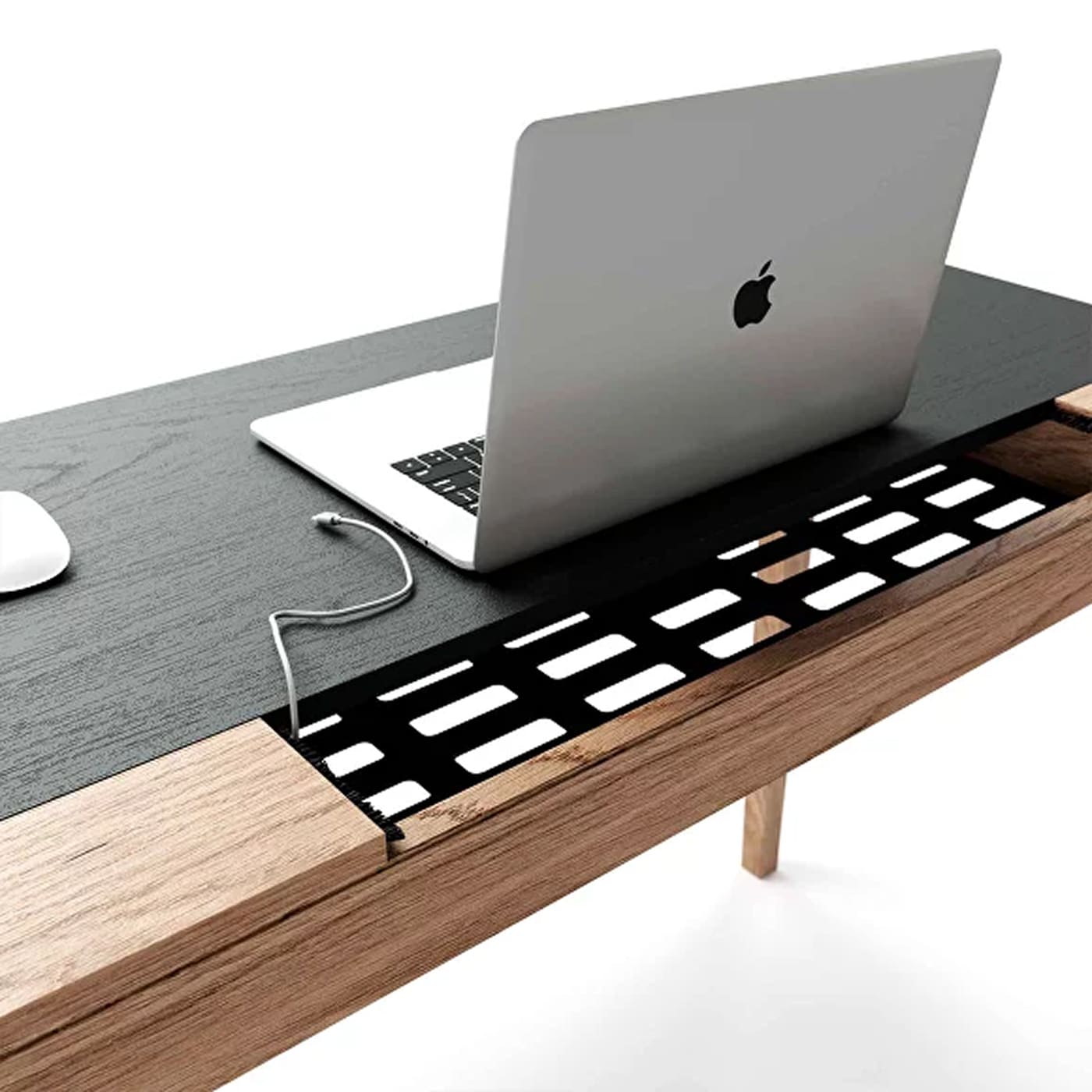 Вторая генерация легендарного письменного стола, GT001. По многочисленным просьбам мы добавили кабель-менеджмент со съемной вставкой.