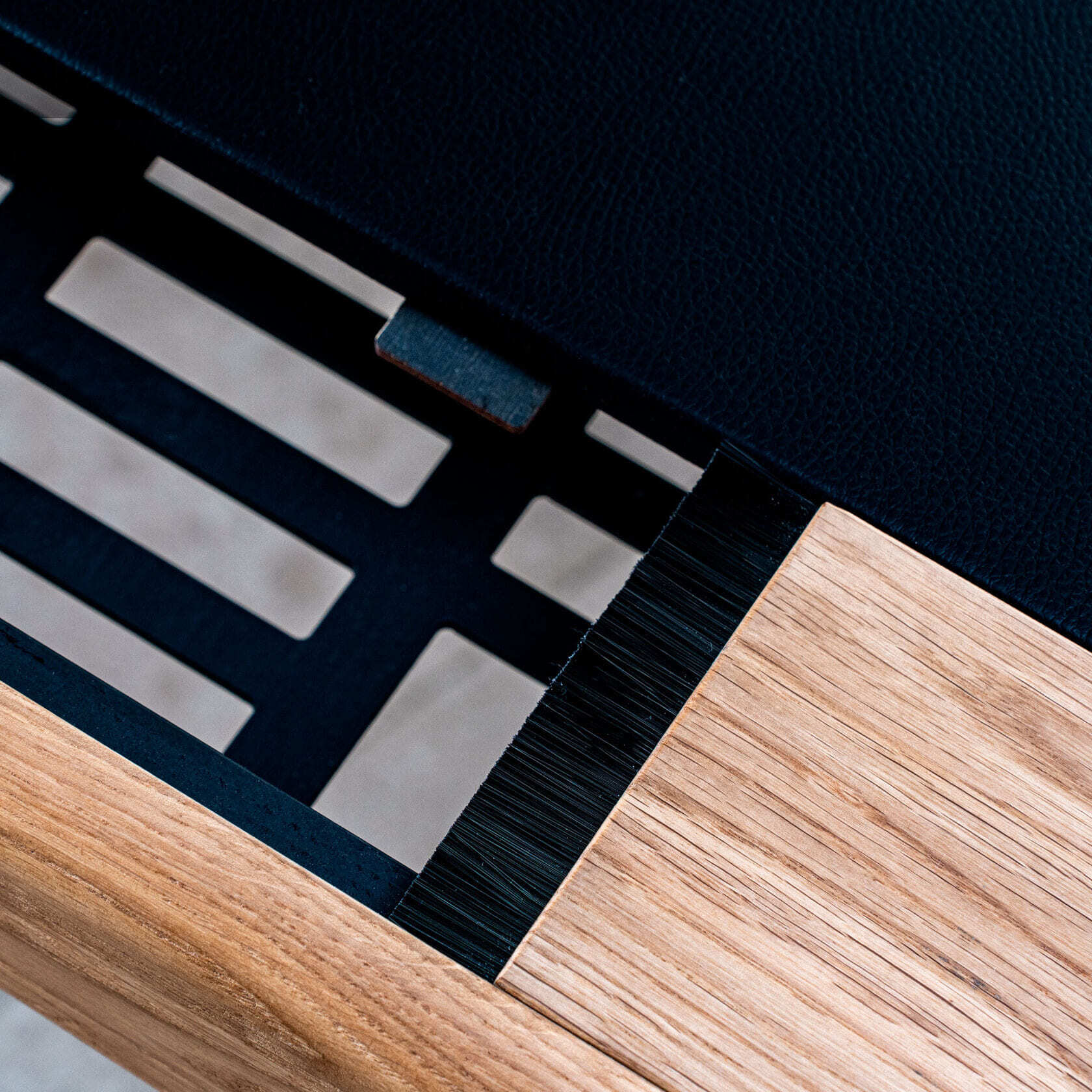 Стол на 100% выполнен из натуральных материалов таких как массива дуба и экокожа высшего качества и березовая фанера. Стол доставит настоящее: эстетическое удовольствие любителям минимализма и чистоты линий.