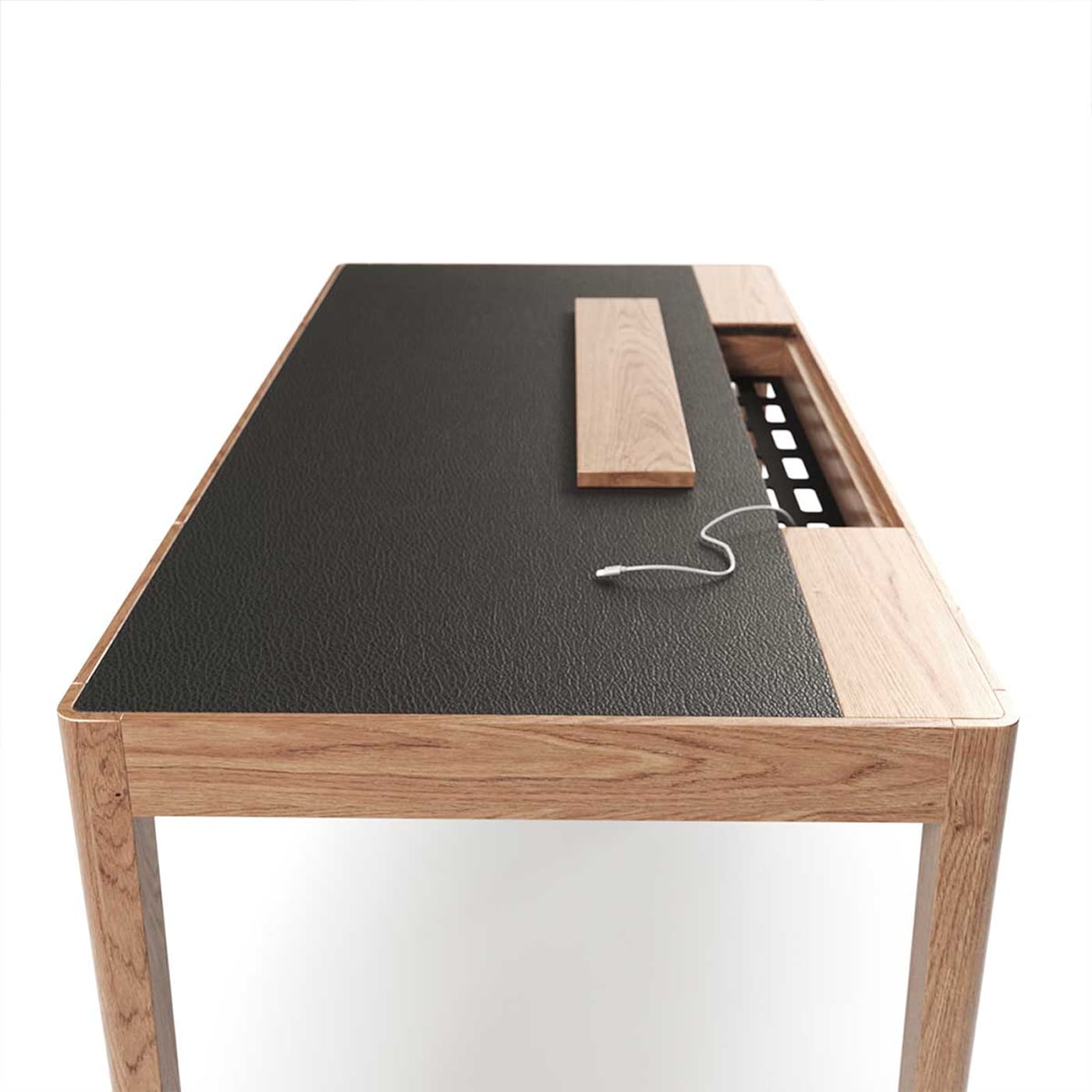 Элегантный дизайн и функциональность гармонично сочетаются в письменном столе GT004. Закругленные элементы стола делают столешницу комфортной и безопасной в использовании. Внутрь стола вы можете спрятать все провода, которые обычно лежат на полу. Под столешницей расположен выдвижной ящик для хранения.