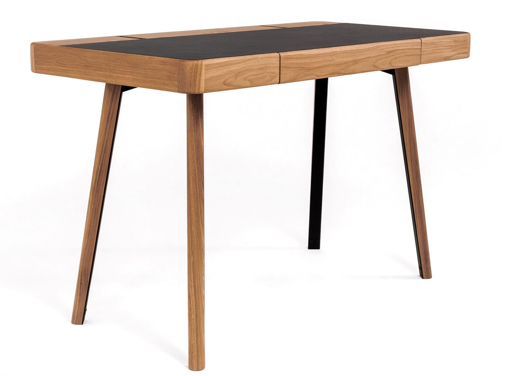 Письменный стол Того не оставит равнодушным ценителя стильных, дизайнерских предметов мебели. Такая модель отлично впишется в интерьер рабочей зоны. Особый, природный колорит вносит уникальная структура натурального дерева. Под столешницей расположен выдвижной ящик для хранения необходимых предметов. На поверхности имеются органайзер для ручек и карандашей.