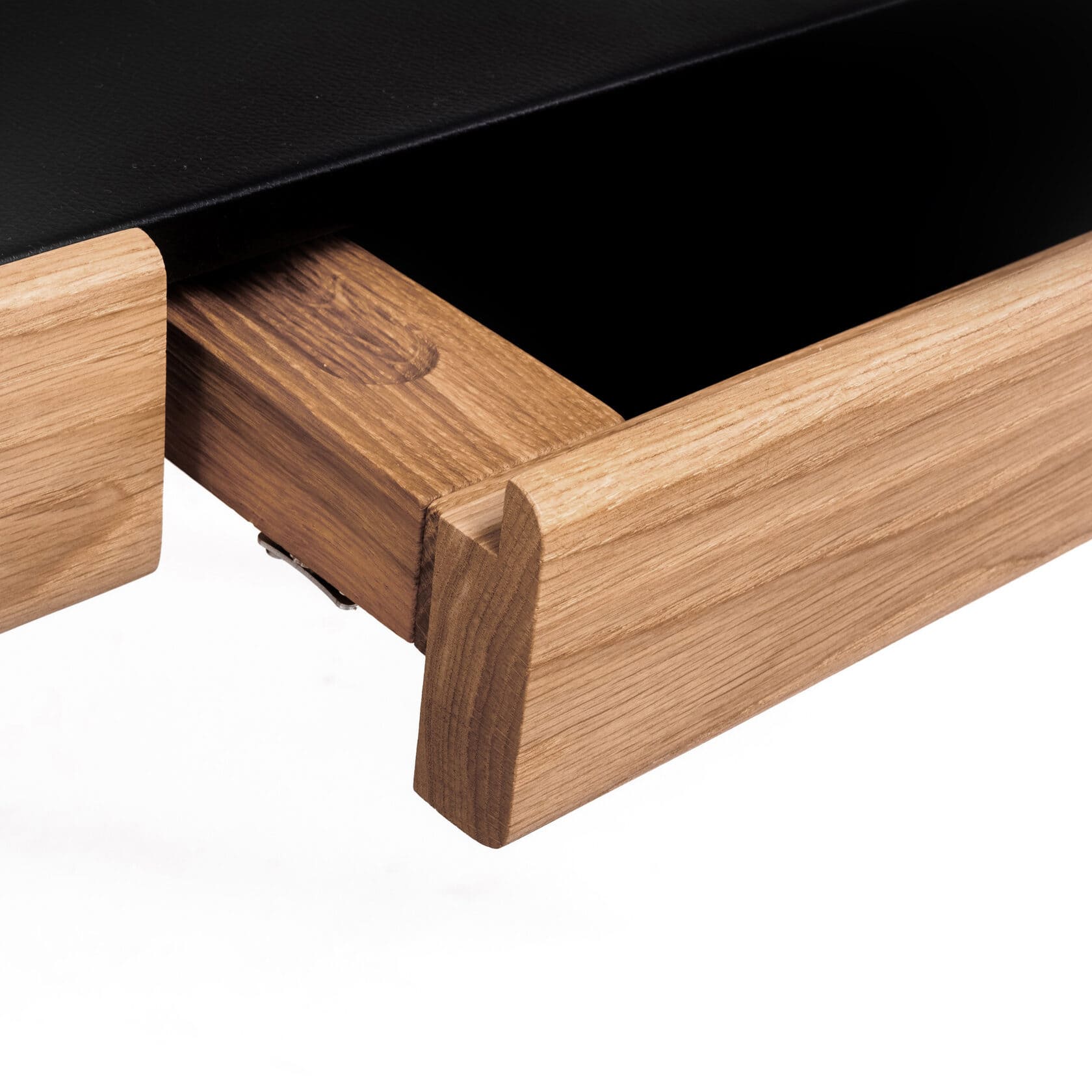В фасадной части находится вместительной выдвижной ящик, в котором можно хранить ‚документы, гаджеты и различные мелочи, нужные для работы.