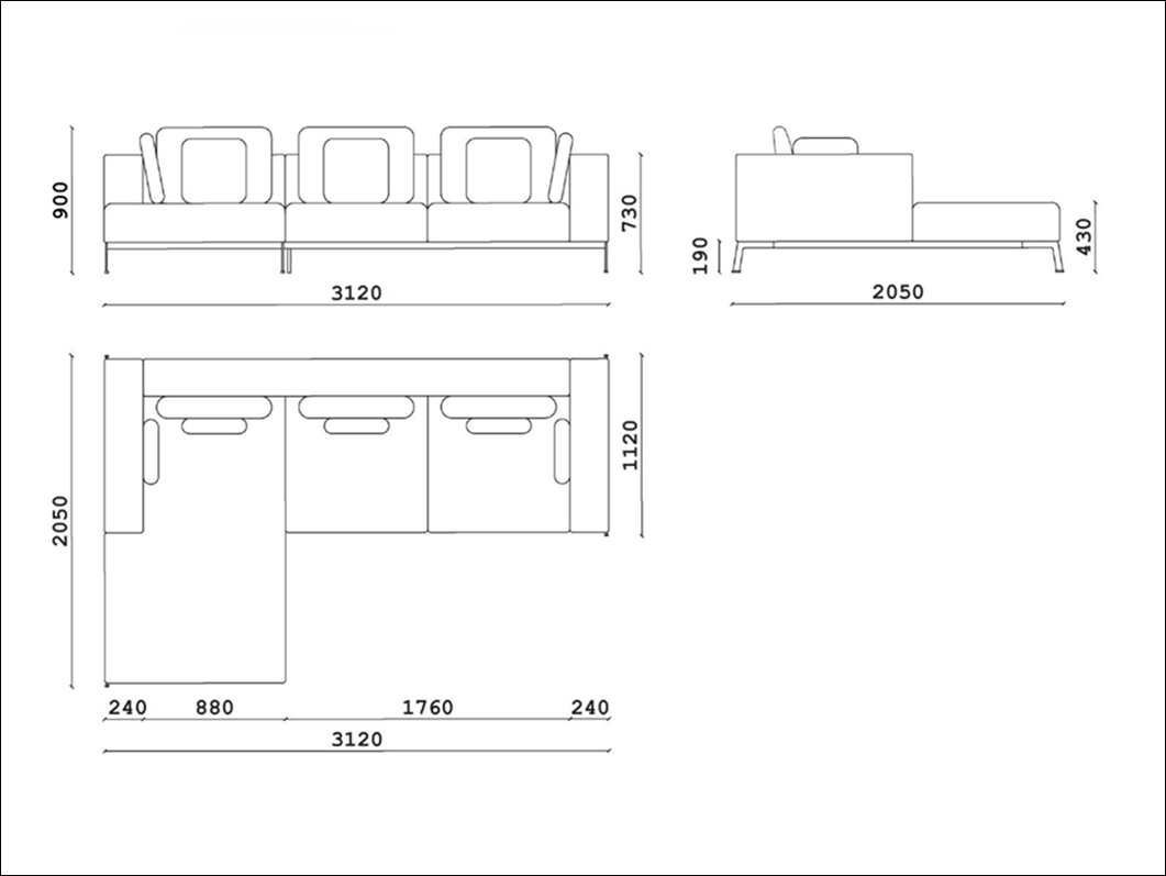 Диван LOFT — это идеальное сочетание современного стиля и непревзойденного комфорта, выделяющееся своими изысканными формами. Внушительные размеры (3120×900×205мм) создают достаточно пространства для уютных вечеров с близкими и комфортного отдыха после долгого дня.