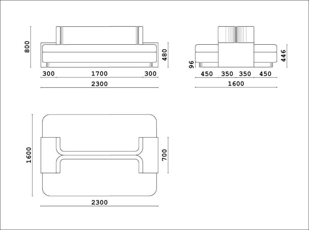 Размер посад. места (ШхГхВ): 160 × 230 × 80 см